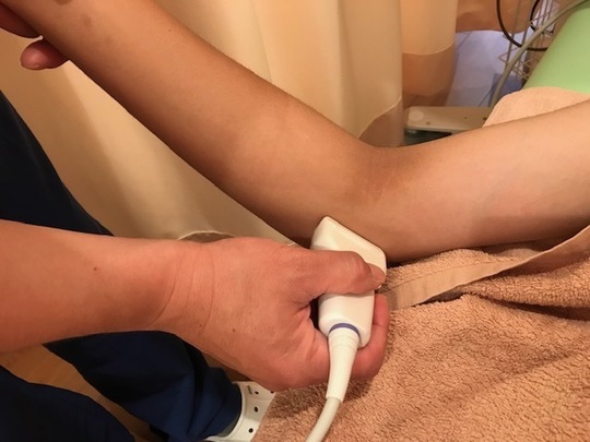 ※野球肩・肘をエコーを使って確認していきます。